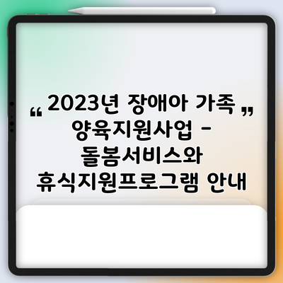 2023년 장애아 가족 양육지원사업 – 돌봄서비스와 휴식지원프로그램 안내